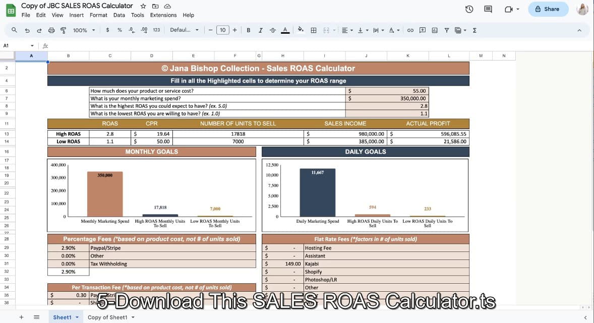 Sales ROAS Calculator: Say goodbye to the guesswork when it comes to ad spending. My unique calculator ensures you invest your budget wisely.