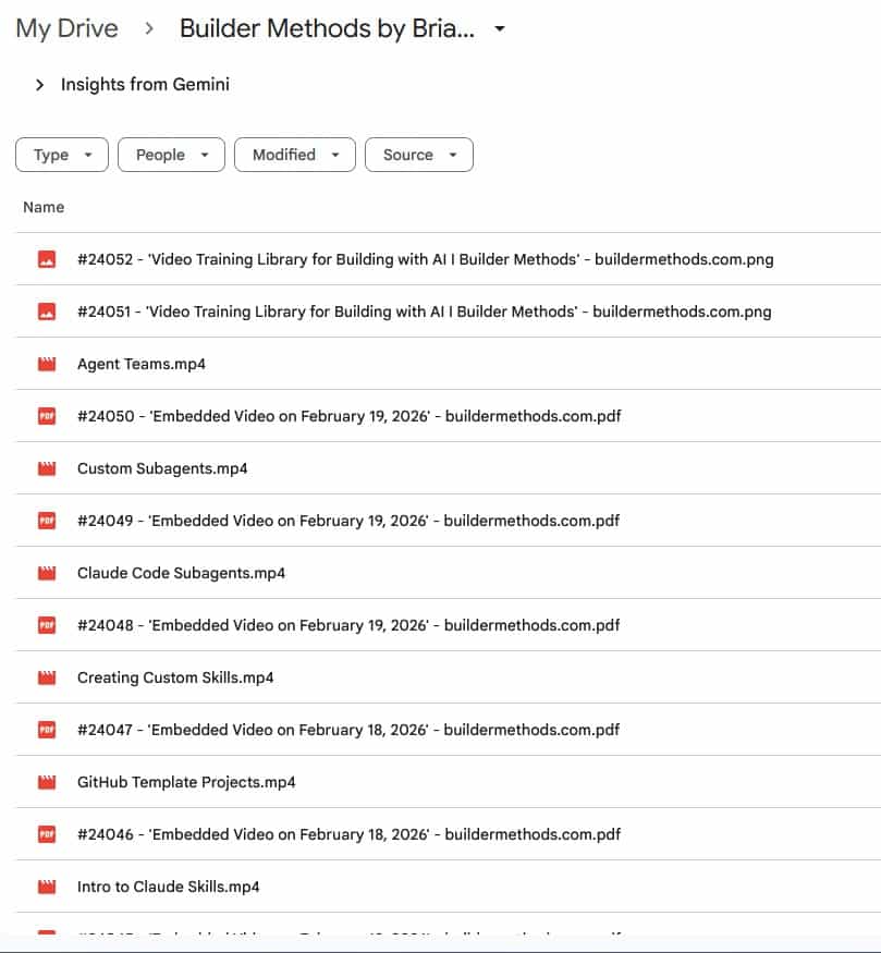 This download includes all recorded video training, workshop recordings, project walkthroughs, downloadable PDFs, reference documents, and subtitle files from the Builder Methods Pro program.