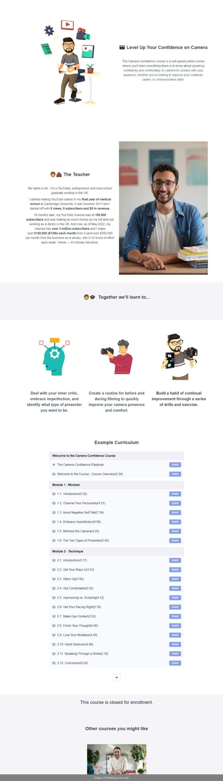 Free Video Sample for Camera Confidence by Ali Abdaal