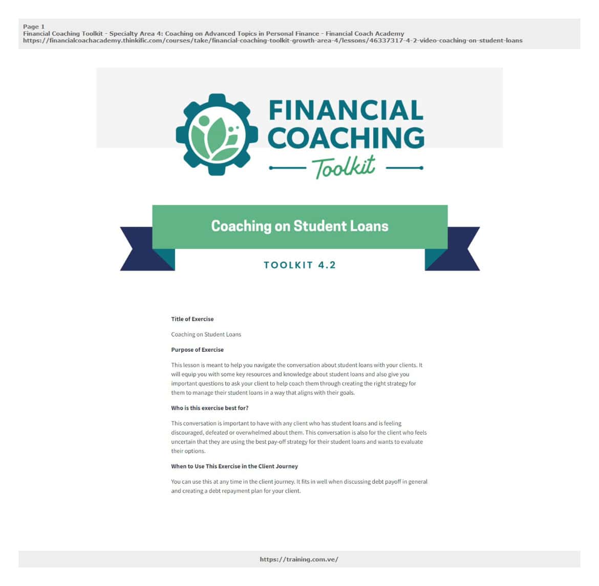 - Included resources: Toolkit Handout 4.2 – Coaching on Student Loans PDF