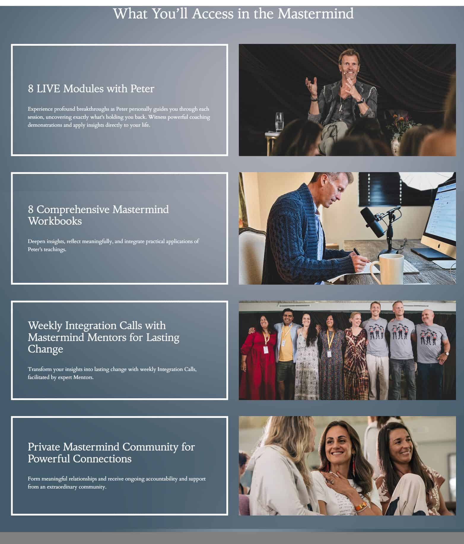 Experience profound breakthroughs as Peter personally guides you through each session, uncovering exactly what's holding you back. Witness powerful coaching demonstrations and apply insights directly to your life.