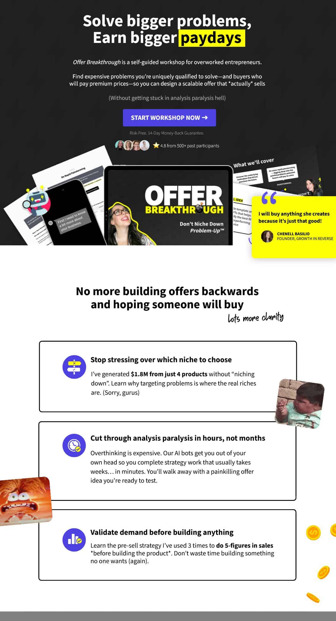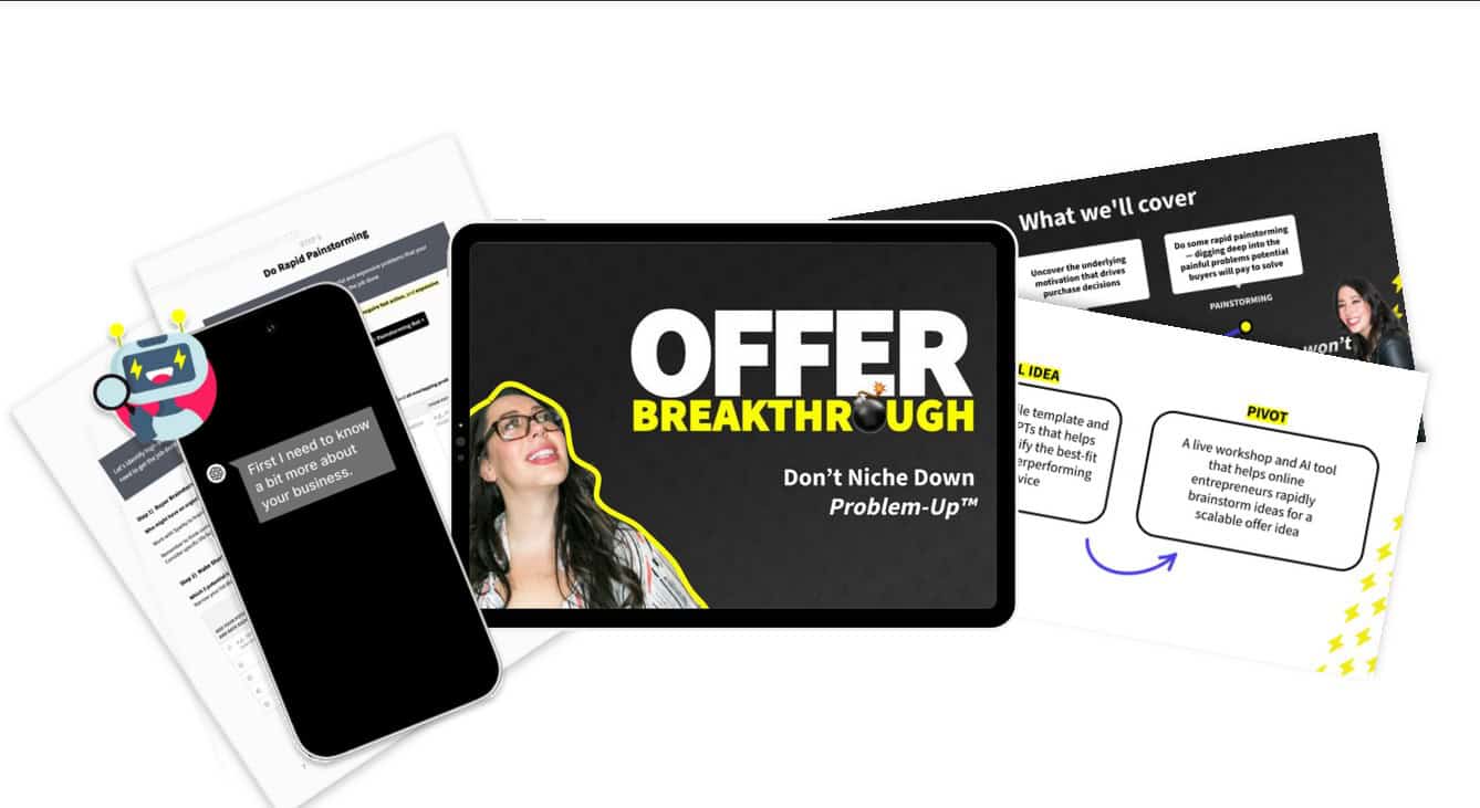 Offer Breakthrough is a self-guided workshop from Katelyn Bourgoin—the buyer psychology expert behind the Forbes-recognized “Why We Buy” newsletter read by 63,000+ marketers. This 4-hour workshop teaches you how to find expensive problems you're uniquely qualified to solve and buyers who will pay premium prices, so you can design a scalable offer that actually sells. Using Katelyn's proprietary Problem-Up™ Offer Design Method and 6 custom AI brainstorming bots, you'll cut through analysis paralysis in hours instead of months and walk away with a validated offer idea ready to pre-sell.