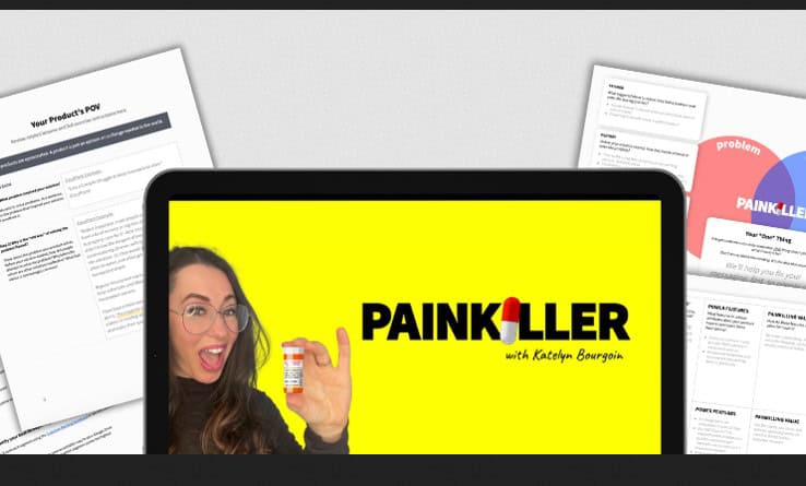 PAINKILLER was created by Katelyn Bourgoin, a 4X founder and growth strategist who has been recognized as an “influential entrepreneur” by Forbes. She's the founder and CEO of Customer Camp and teaches buyer psychology to 280,000+ people through her Why We Buy newsletter, X account (139.4K followers), and LinkedIn (89K followers).