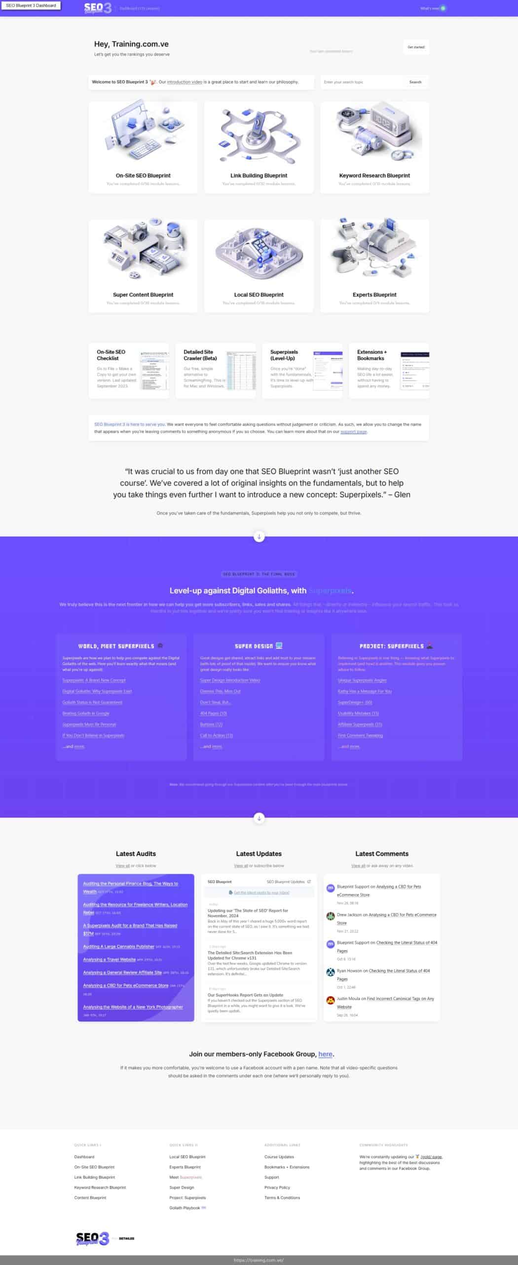 This SEO guide has three main tools: Blog Blueprint, Article Blueprint, and Link Blueprint. For $67 a month, you get over 25 hours of training. You'll learn from six experts and join thousands of discussions.