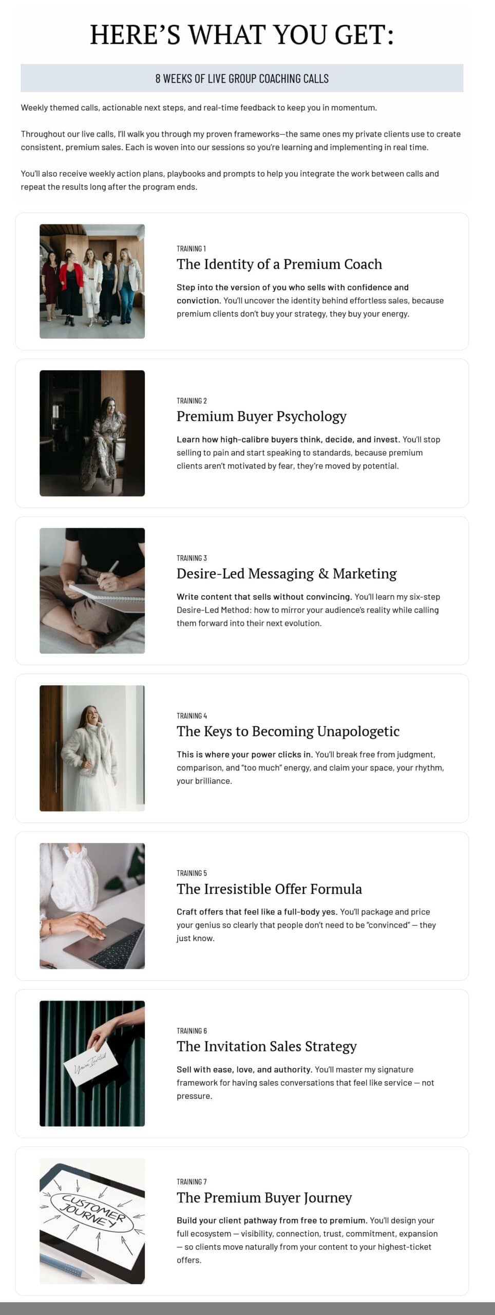 • Anyone who wants more premium clients, consistent sales, and a bolder, more aligned brand voice